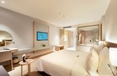 Просторий номер із окремою спальнею та вітальнею, ідеальний для тривалого перебування або бізнес-гостей. Має додаткову обідню зону, розділені житлові простори та покращене оздоблення. Оснащений кондиціонером, телевізором із плоским екраном і супутниковими каналами, сейфом, електричним чайником, міні-баром, письмовим столом, шафою, прасувальними засобами, холодильником, а також окремою ванною кімнатою з душем або гідромасажною ванною, феном, халатами, капцями, рушниками та безкоштовними туалетно-косметичними засобами. Усі номери — для некурців.