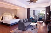 Найрозкішніша категорія готелю, площею понад 100 м². Має кілька зон — простору вітальню, спальню, робочий кабінет і терасу з видом на океан. Ванна кімната обладнана ванною, душем і преміальними косметичними засобами. Це варіант для гостей, які прагнуть максимального рівня комфорту та приватності.