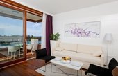Більш просторі люкси з окремою спальнею та вітальнею. Вони пропонують сучасний інтер’єр, балкон із панорамним видом на Адріатику та додаткові зручності для тривалого перебування. Це вибір для гостей, які прагнуть більшої приватності та комфорту.