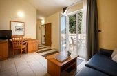 Просторі апартаменти, що складаються зі спальні та вітальні зони. Оснащені міні‑кухнею з холодильником, мікрохвильовою піччю та посудом, що робить їх зручними для тривалого відпочинку. Балкон або тераса дозволяють насолоджуватися краєвидами узбережжя. Ідеальний варіант для пар, які хочуть більше простору, або для невеликих родин.