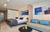 Просторий сімейний номер із видом на море, обладнаний двоспальним ліжком та додатковим місцем для дитини. Має сучасний інтер’єр, телевізор із супутниковими каналами, кондиціонер, сейф та мебльований балкон. Оптимальний варіант для родин із дітьми, які хочуть поєднати комфорт і мальовничі краєвиди.