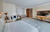 Розкішний люкс площею близько 150 м² із просторою вітальнею, їдальнею та спальнею. Має панорамні види на місто, сучасну мультимедійну систему, міні‑бар, сейф, гардеробну та ванну кімнату з преміум‑косметикою, створюючи атмосферу приватних апартаментів.