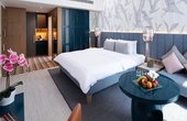 Комплекс налічує понад 200 номерів і люксів, оформлених у сучасному стилі зі світлими тонами та дизайнерськими деталями. У кожному номері є кондиціонер, телевізор із плоским екраном, міні‑бар, кавоварка, окрема ванна кімната, халати та балкон зі скляними огорожами, що відкриває види на море або острів. Звукоізоляція забезпечує комфортне перебування.