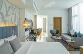 Готель розташований на узбережжі Palm Jumeirah і має власний приватний пляж, що створює ідеальні умови для романтичних прогулянок та відпочинку біля моря. Просторі номери та люкси з балконами відкривають панорамні види на Перську затоку, а сучасний інтер’єр у світлих тонах додає атмосфері гармонії та затишку.