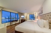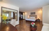 Номер підвищеної категорії з окремою спальнею та вітальнею, обідньою зоною та покращеним інтер’єром. Підходить для бізнес-гостей, пар або родин, які бажають більше приватності та простору. Оснащення включає кондиціонер, телевізор із плоским екраном і супутниковими каналами, сейф, електричний чайник, міні-бар, письмовий стіл, шафу, прасувальні засоби, холодильник, постільну білизну та рушники. У ванній кімнаті — біде, душ або гідромасажна ванна, фен, халати, капці та безкоштовні туалетно-косметичні засоби. Деякі номери мають балкон і частковий вид на море.