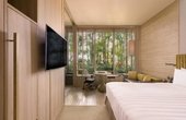 До послуг гостей — сучасні номери та люкси з панорамними вікнами, які відкривають вид на міський пейзаж або зелені сади готелю. Номери оснащені кондиціонером, сейфом, телевізором із плоским екраном, міні-баром, кавоваркою/чайником. У ванних кімнатах є фен, халат та безкоштовні туалетні приналежності. Інтер’єр виконаний у сучасному стилі з використанням екологічних матеріалів.