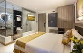 Найбільша категорія з окремою зоною для відпочинку, панорамними вікнами або терасою. Оснащений м’якими меблями, розширеним набором зручностей, включно з сейфом, обіднім столом, холодильником і покращеним санвузлом. Підходить для молодят або гостей, які планують тривале перебування. Номер обладнений кондиціонером, телевізором із плоским екраном, робочим столом, обіднім столом, холодильником, сейфом, електрочайником, гіпоалергенним постільним приладдям та безкоштовним Wi-Fi. У ванній кімнаті — душ або ванна, біде, фен, рушники, туалетно-косметичні засоби.