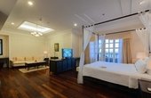 Найрозкішніший варіант із кількома зонами: спальня, вітальня, обідня зона, велика тераса з видом на море. Площа — понад 100 м². Оснащення включає кондиціонер, телевізор із плоским екраном і супутниковими каналами, сейф, письмовий стіл, електрочайник, мінібар, безкоштовний Wi-Fi, ванну кімнату з ванною або душем, халати, тапочки та туалетно-косметичні засоби.