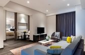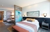 Просторий люкс із окремою спальнею та вітальнею, що забезпечує більше приватності й комфорту. Оснащений сучасними меблями, робочою зоною та панорамними вікнами.