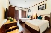 Tran Vien Dong Hotel — це класичний тризірковий міський готель, розташований у самому центрі Нячанга, на вулиці Tran Hung Dao, лише за 8–10 хвилин ходьби від пляжу Нячанга. Готель поєднує зручне розташування, великий відкритий басейн, сад, фітнес-центр, комфортні номери та доступні ціни, що робить його популярним серед туристів, які шукають практичне розміщення з базовими зручностями.