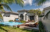 Простора вілла з трьома спальнями, великою вітальнею, приватним садом і терасою. Підходить для великих сімей або груп. Має окремі ванні кімнати, повноцінну кухонну зону, обідній стіл, зони для відпочинку та преміальні зручності.